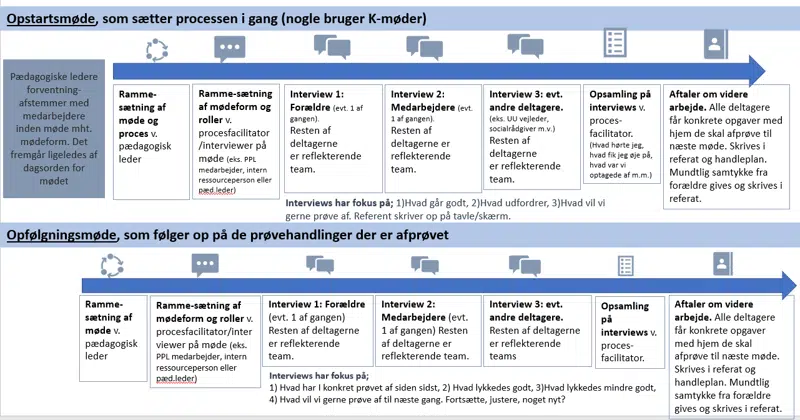 Model der viser eksempler på opbygning af møder (til inspiration)